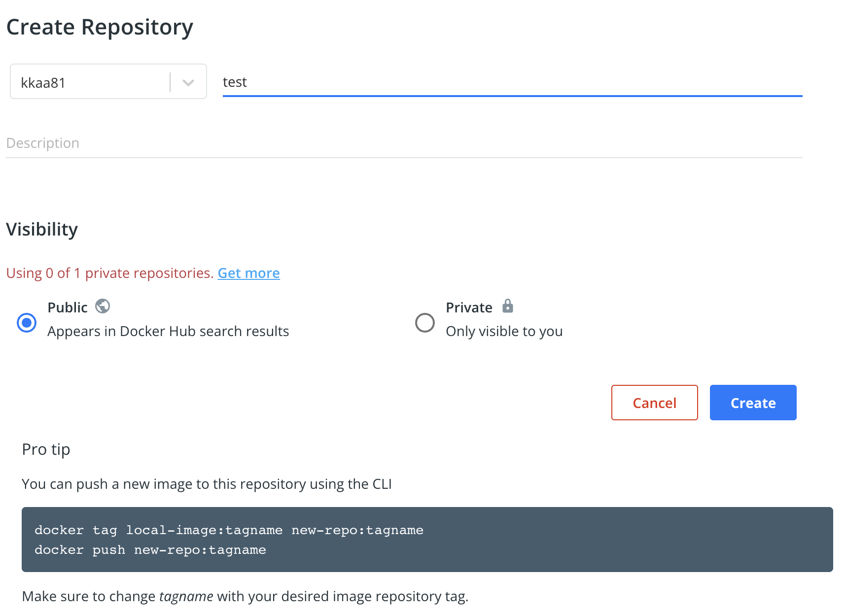 - Docker hub에서 create repository