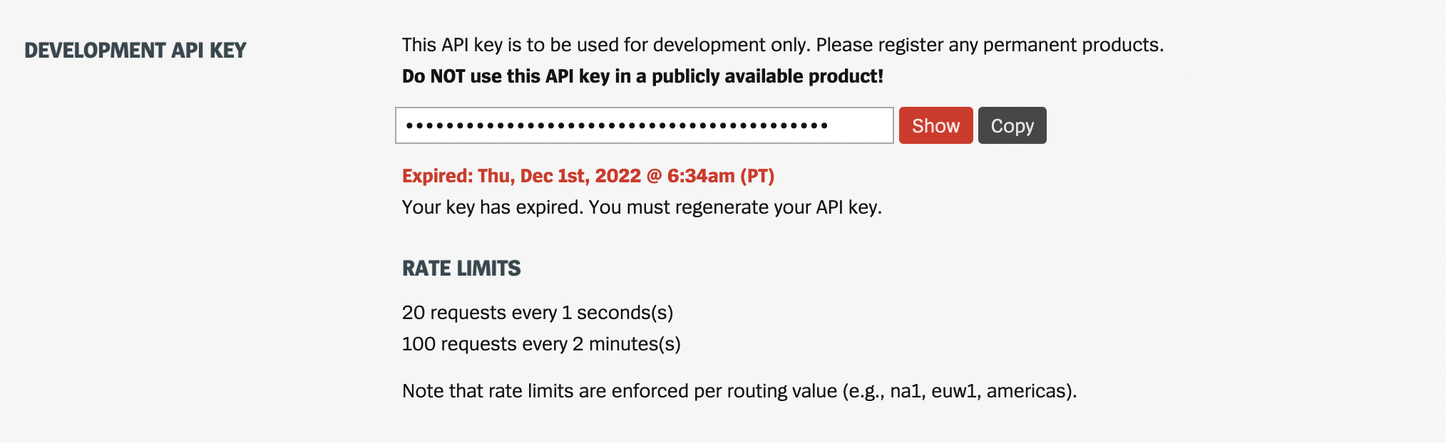 하지만 라이엇에서 주어지는 api key는 유효기간이 하루 정도 밖에 안되는데요...