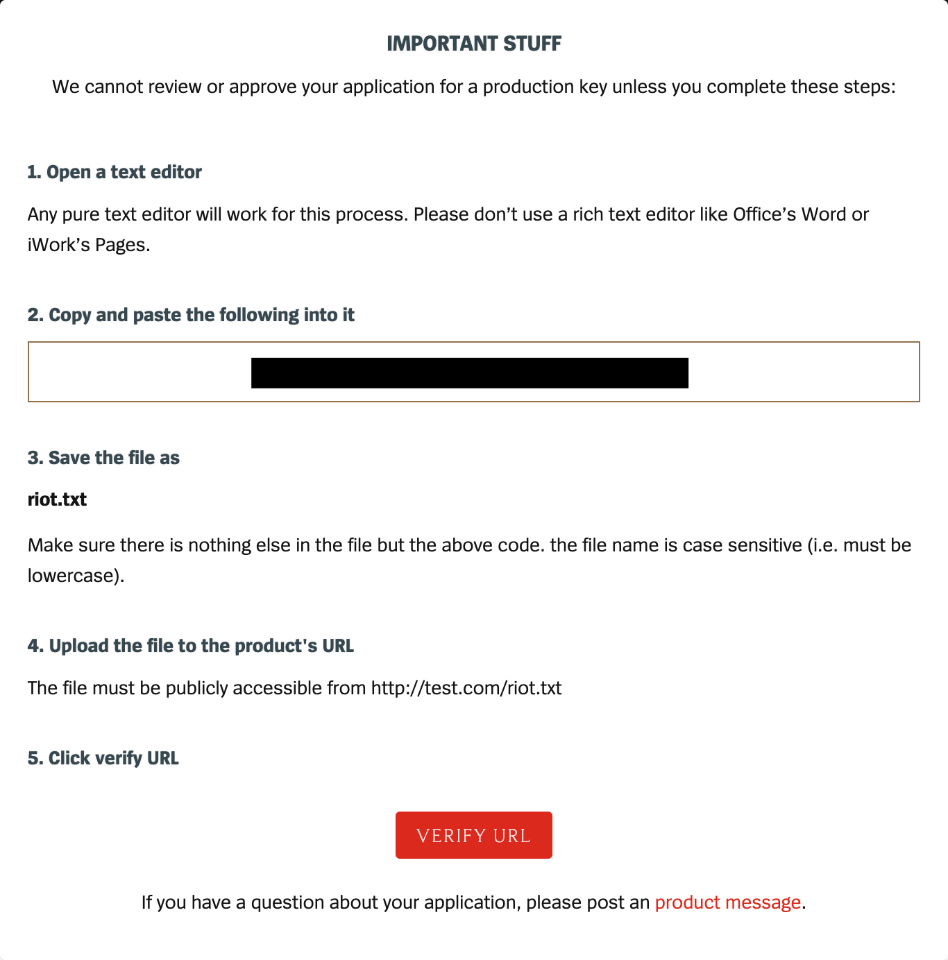 이런 창이 나오시는데요. 2번 문구에 적힌 코드를 riot.txt 파일을 생성하셔서 복사 붙여넣기해주시고,